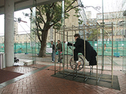 The Robotic Cyclist located in the University of Technology Sydney (UTS) in one of the foyers adjacent to Harris St.