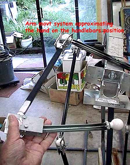 3. cycling action with the legs - controlled by a motor located in the far corner and attached to the large wheel by a long pulley belt (special neoprene rubber). |