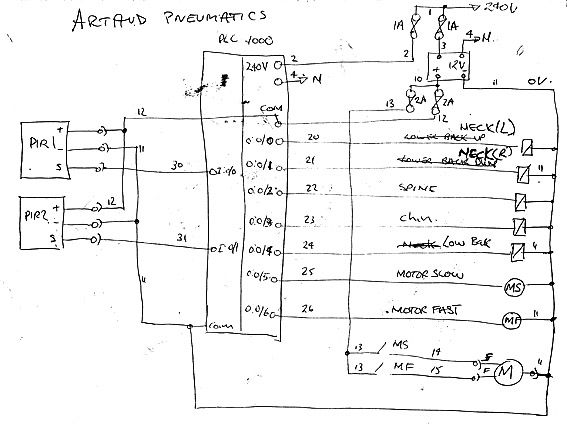 schematic showing how the electrics are connected; inputs & outputs into the PLC