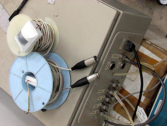 Motion (Passive Infra red PIR) sensors ready to be plugged into grey box; NB air hoses already connected to the box