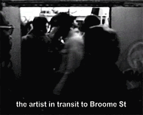Later, in 1977, the artist was on study leave in New York City at the Pratt Graphic Center. Here, he was able to develop and execute an ancillary performance on the corner of Broome Street and West Broadway which developed as The videotapes, one from the Broome St performance and the other from the Durras performance were combined as black/white video in that order. |