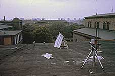 Hamburg Kunstverein 24-hour rooftop occupation performance on 23 June 1983 The artist was given permission by the director of the Hamburg Kunstverein to occupy the rooftop of the gallery for a 24 hour period across the summer solstice. This was to be the first such rooftop occupation following the abandoned Art Gallery of New South Wales proposal in June 1981. The artist carried the tent from Berlin, pitched it on the roof and comfortably/uncomfortably documented and witnessed the passing of the Solstice period. Hamburg media were interested in the event and a reporter from the Hamburg Abentblatt reported on it. |
